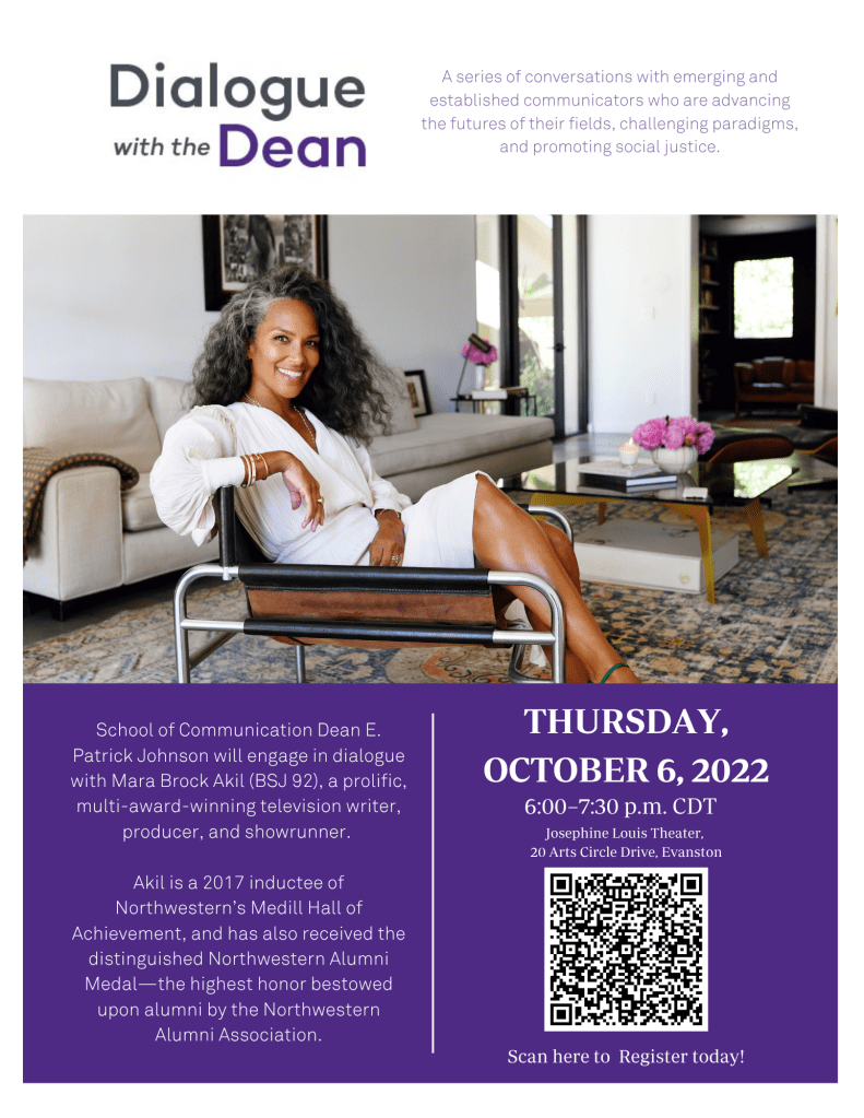 Flyer created to promote the Dean’s conversation with award-winning television writer, producer, and showrunner Mara Brock Akil.