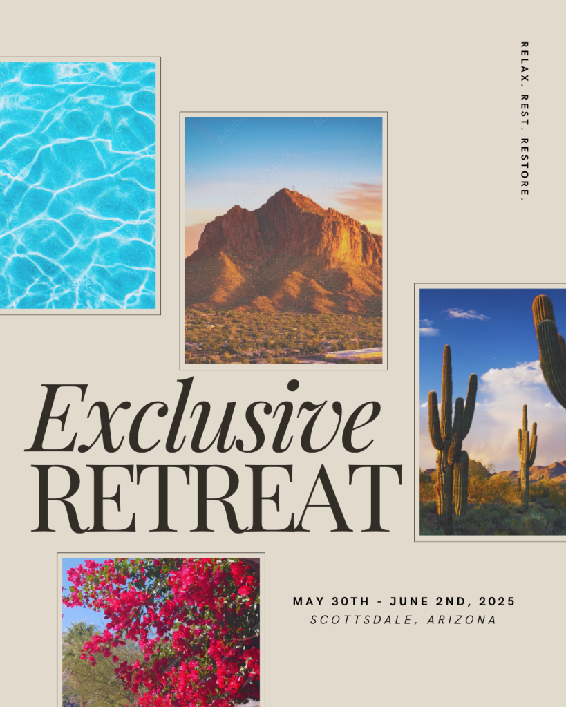 These graphics were designed specifically for online distribution via email, social media, websites, or social-planning event platforms for a retreat themed birthday party. Made to stand alone or be shared in tandem these marketing materials include an itinerary, excursion options to choose from, and details about their stay. These materials were designed with the theme of Southwest Relaxation for an event but social media flyers can be used to communicate information on just about anything including events, new client services, thought leadership, etc.